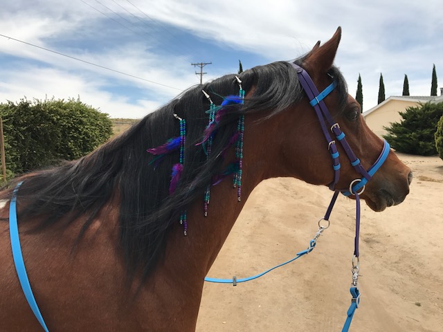 Overlay Beta headstalls are made in our workroom as a special order. You need to allow approximately 5 days for shipping. Custom Overlay Beta headstalls may be ordered with your choice of browband color, loop color, bridle base color and noseband overlay color. Your choices are numerous. Choose your own colors from the color sample chart below. Because there are so many choices to consider, it is best to call to place your order 877-942-4277. If you choose to add the product to your cart, be sure to submit clear details in the note section at check out. (This is a special order item, therefore it is not returnable. Be sure to measure for the correct size). Matching Custom reins are sold separately.