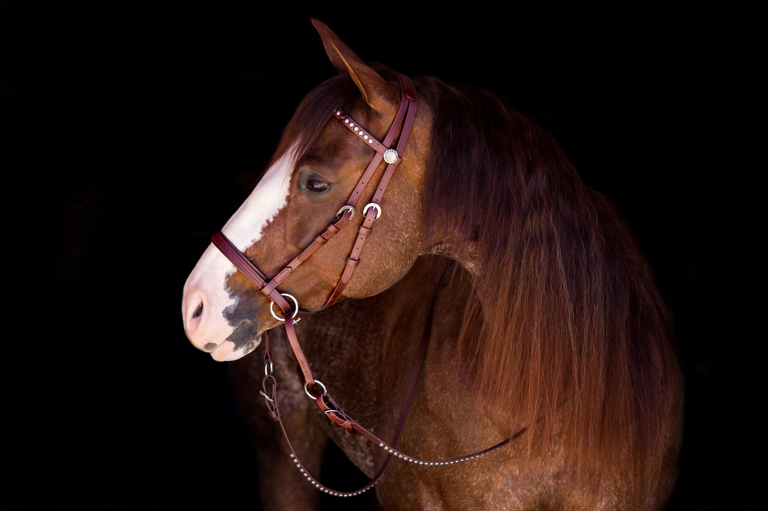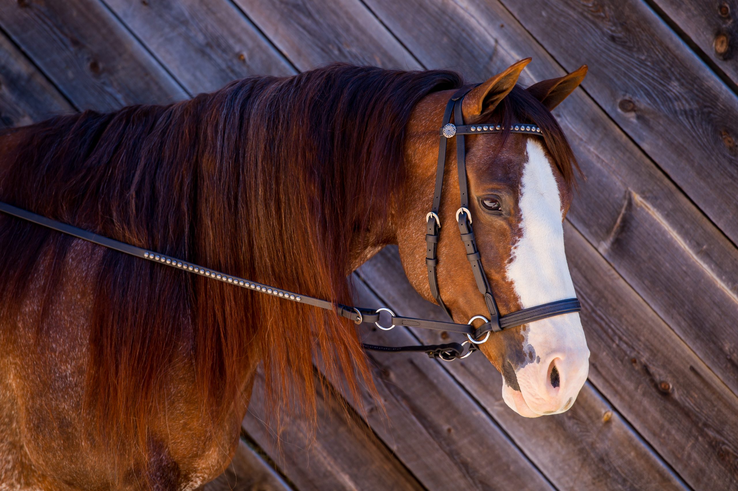 Noseband: Measure 1 1/2 ” to 2″ up from the corner of the horse’s mouth. From that point, measure the circumference of the horse’s nose.