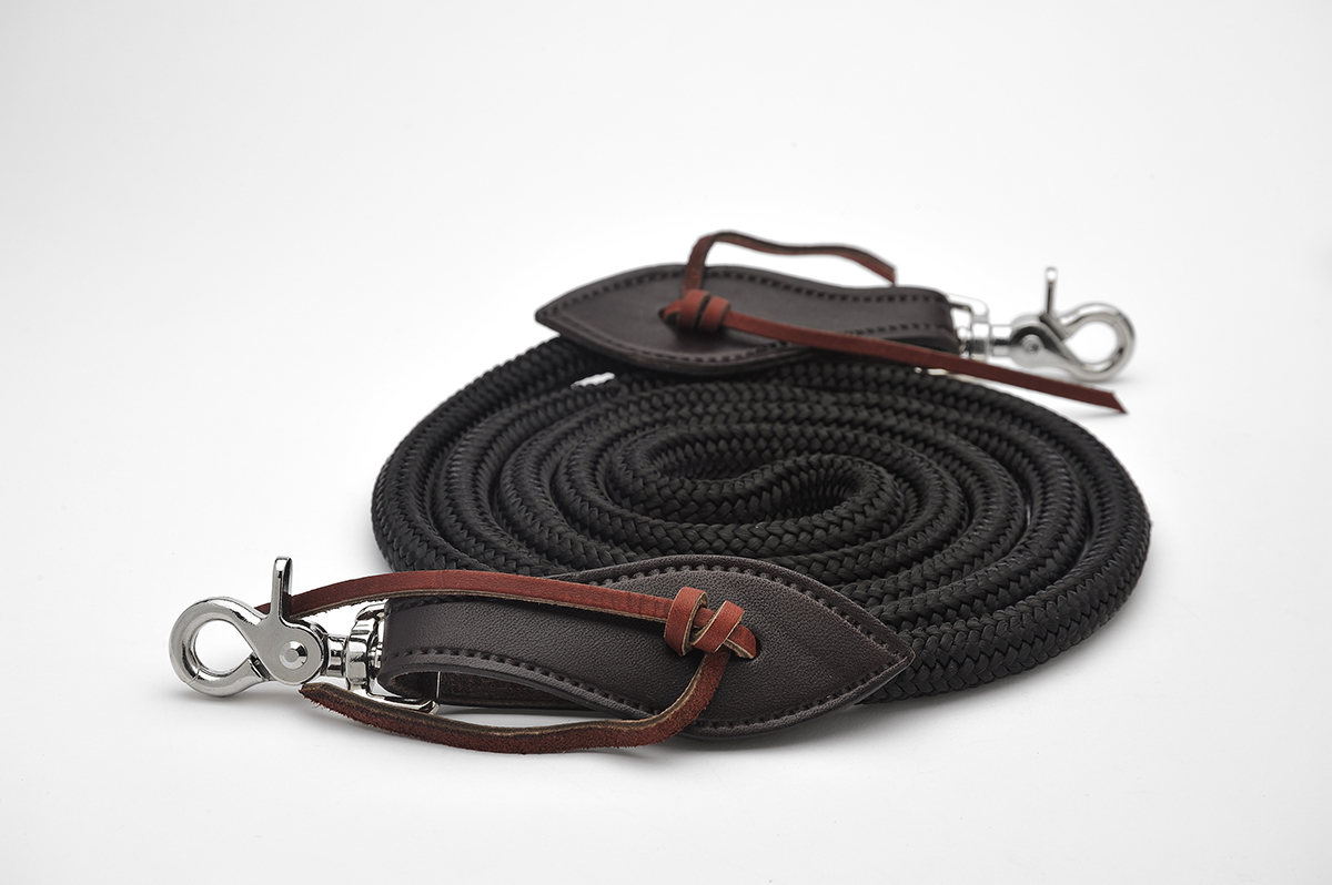 Double-Braided reins are 7′ long and 1/2” thick, one continuous rein made in the USA out of high quality materials. Finished out with leather slobber straps and snaps on each end for easy on and off. This double braided rein is soft and durable, great for Western or English riding. Available in Brown or Black.