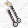 Accented with Gray and Black suede under flower concho, this is not your normal Key Fob. This versatile Fob can be used for your Keys, Hoof Pick, Bag Zipper-Pull, Gate Opener, and many other small items that are often lost or misplaced.